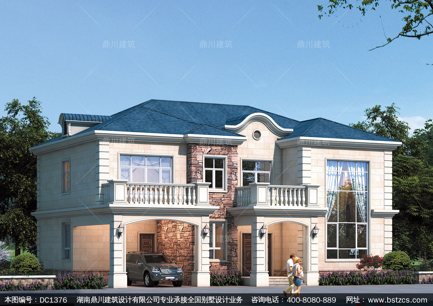 歐式二層帶車庫效果圖及施工圖紙_農村自建別墅設計,鼎川建筑