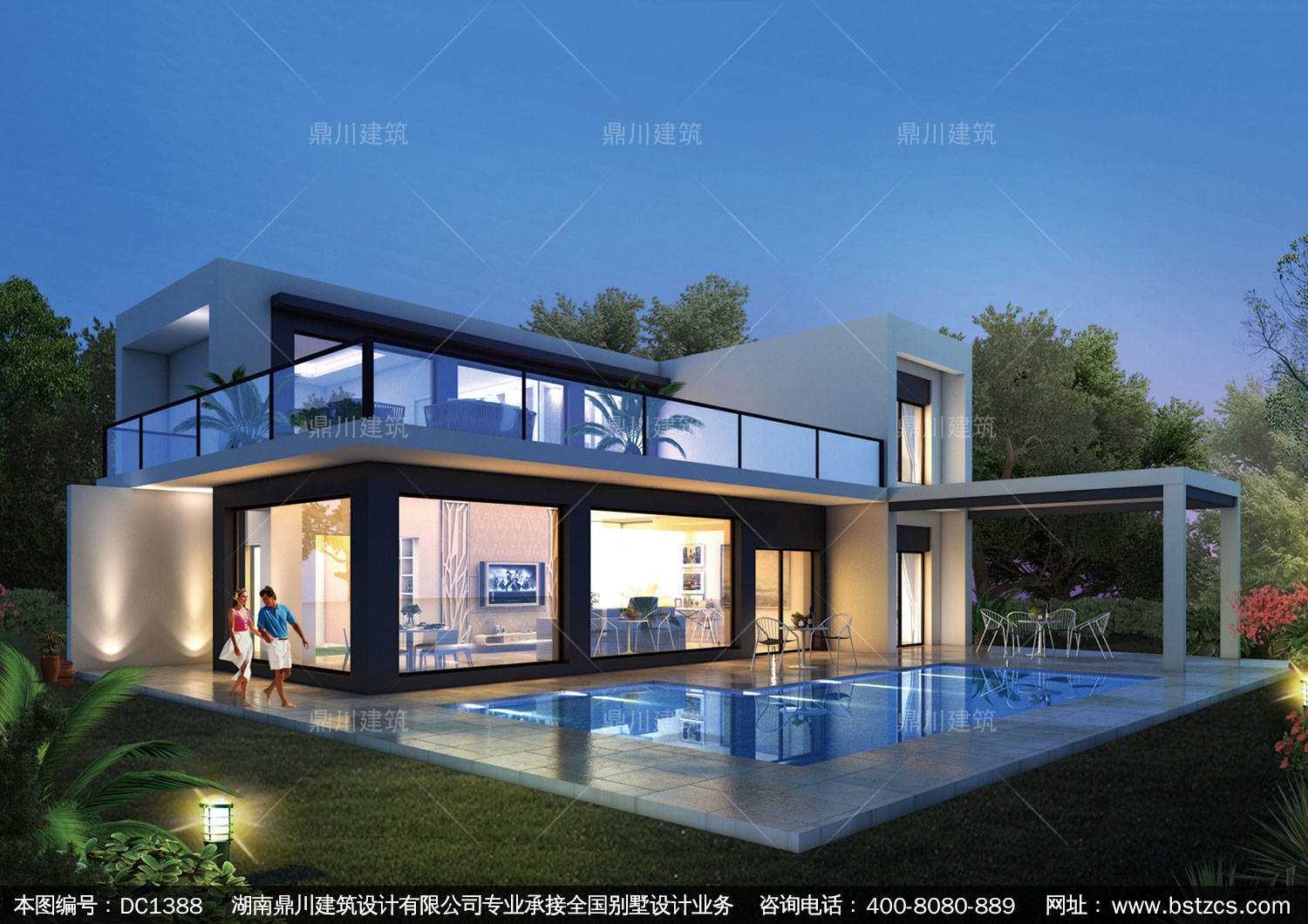 現(xiàn)代二層別墅效果圖及施工圖紙_農村自建別墅設計,鼎川建筑