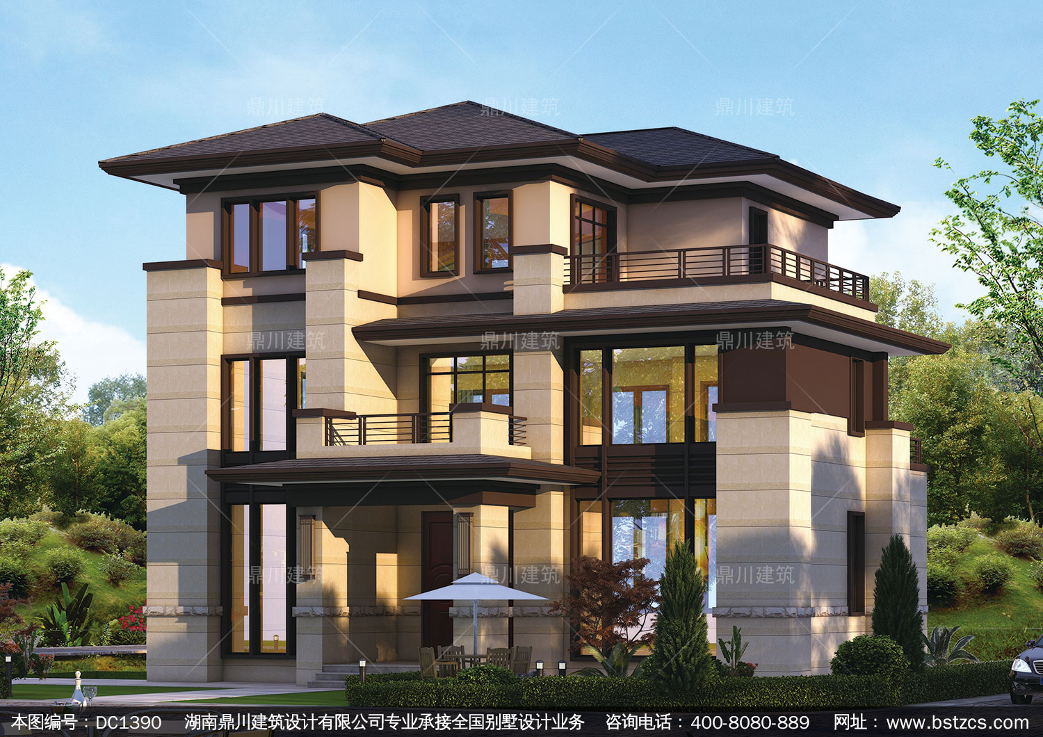 新中式三層別墅效果圖及施工圖紙_農(nóng)村自建別墅設(shè)計,鼎川建筑
