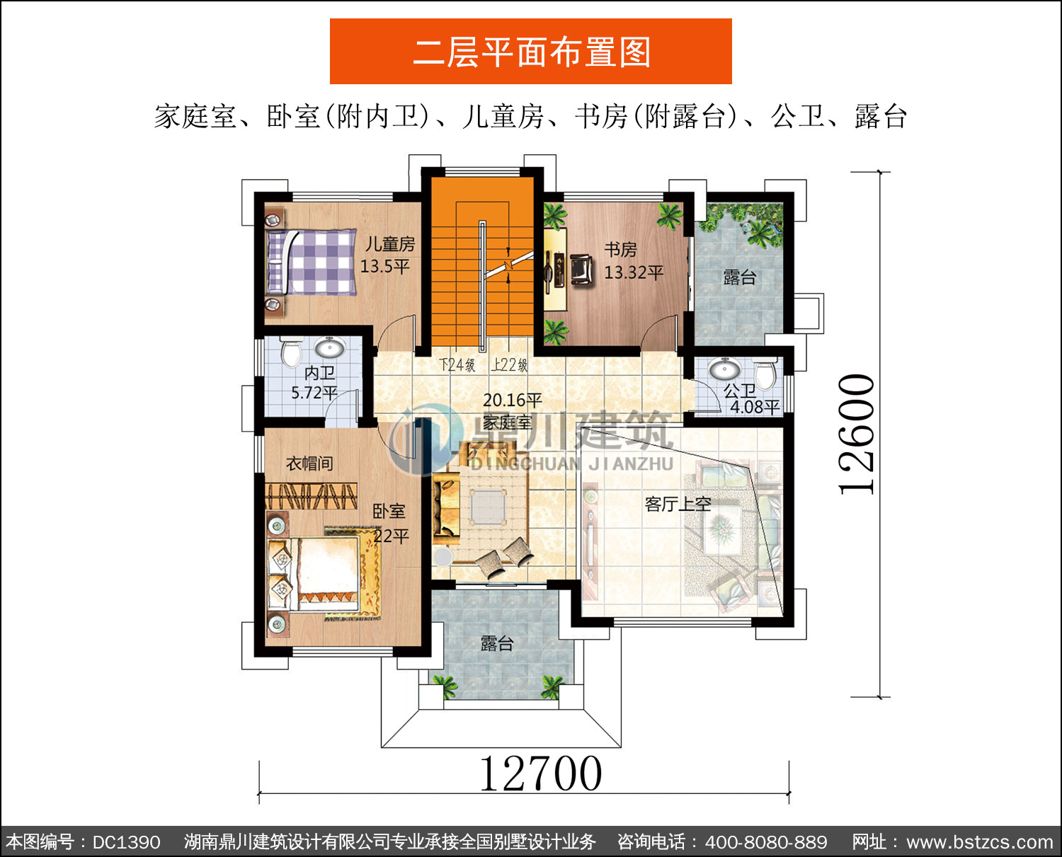 | 二 層: | 家庭室、臥室(附內(nèi)衛(wèi))、兒童房、書房(附露臺)、公衛(wèi)、露臺 | |||