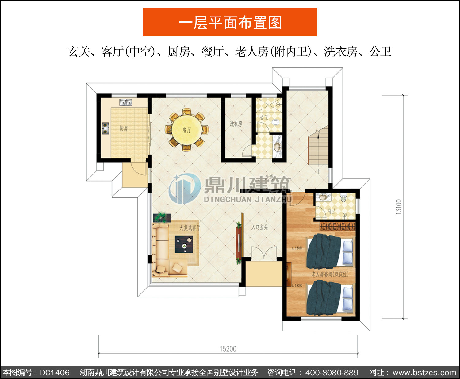 | 一 層: | 玄關(guān)、客廳(中空)、廚房、餐廳、老人房(附內(nèi)衛(wèi))、洗衣房、公衛(wèi) | |||