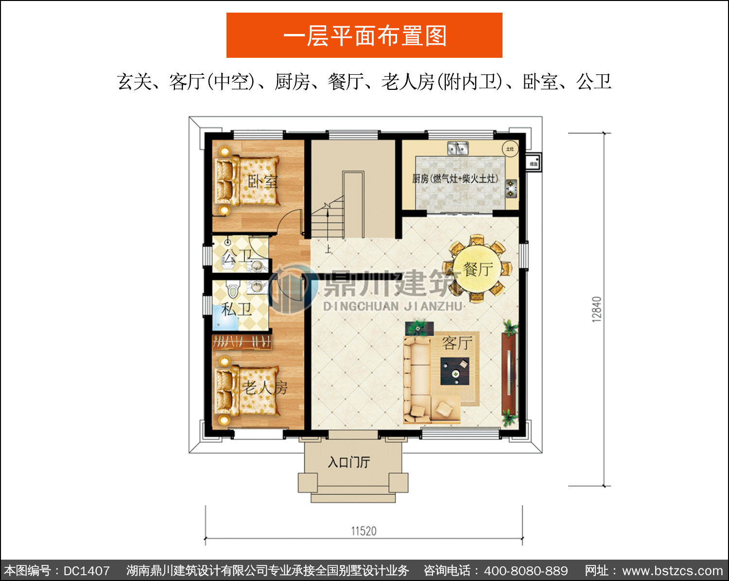 | 一 層: | 玄關(guān)、客廳(中空)、廚房、餐廳、老人房(附內(nèi)衛(wèi))、臥室、公衛(wèi) | |||