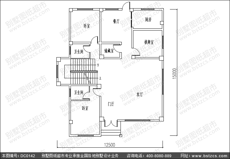 一 層: 客廳、臥室(附衛(wèi)生間)、臥室、棋牌室、廚房、餐廳、儲藏室、衛(wèi)生間