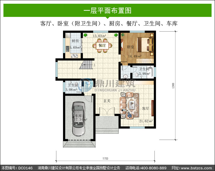 | 一 層: | 客廳、臥室(附衛(wèi)生間)、廚房、餐廳、衛(wèi)生間、車庫 | |||