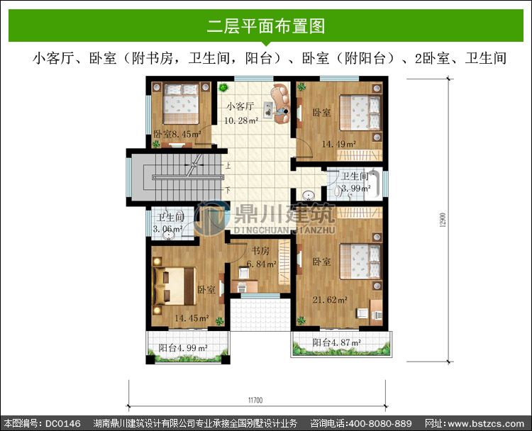 | 二 層: | 小客廳、臥室(附書房,衛(wèi)生間,陽臺)、臥室(附陽臺)、2臥室、衛(wèi)生間 | |||
