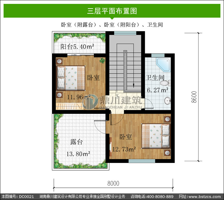三 層: 臥室(附露臺)、臥室(附陽臺)、衛(wèi)生間