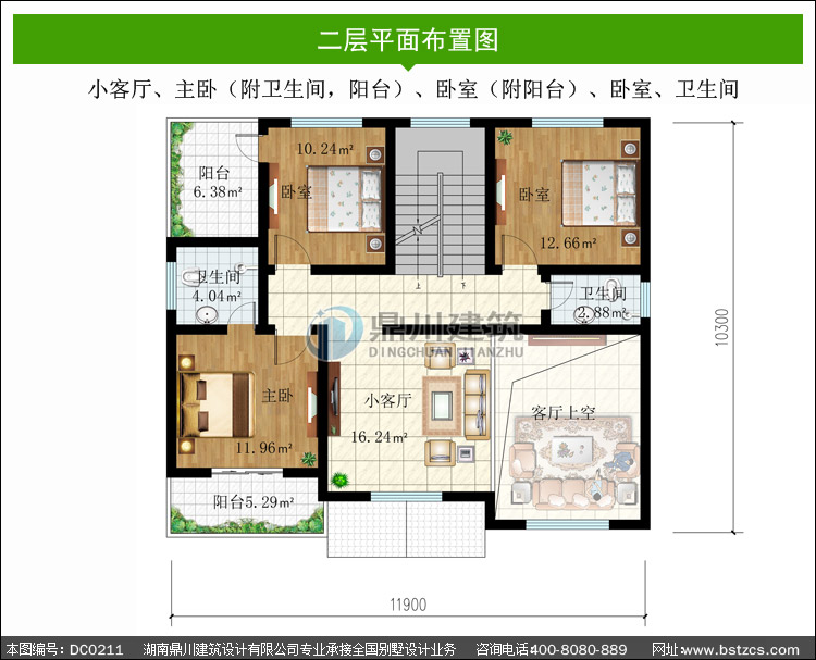 | 二 層: | 小客廳、主臥(附衛(wèi)生間,陽臺(tái))、臥室(附陽臺(tái))、臥室、衛(wèi)生間 | |||