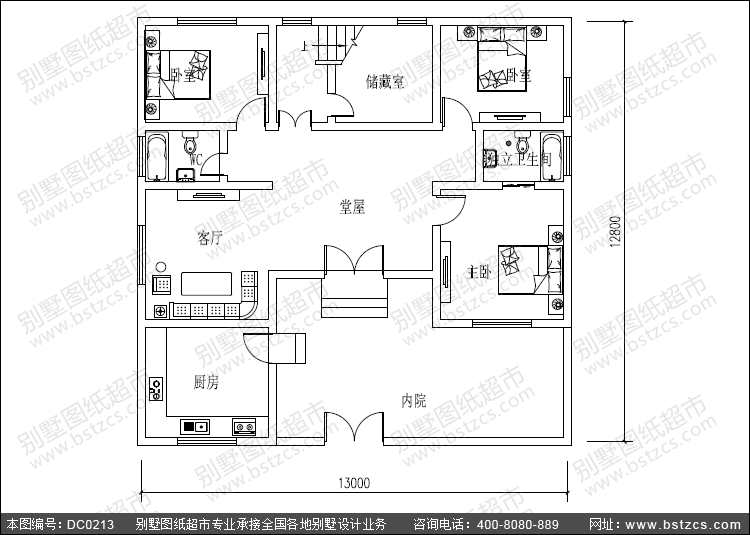 | 一 層: | 內(nèi)院、堂屋、客廳、臥室(附衛(wèi)生間)、2臥室、廚房、儲藏室、衛(wèi)生間 | |||