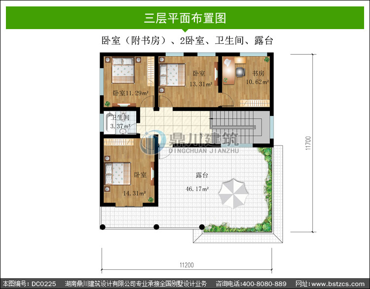 | 二 層: | 客廳、臥室(附陽臺)、2臥室、書房、衛(wèi)生間 | |||