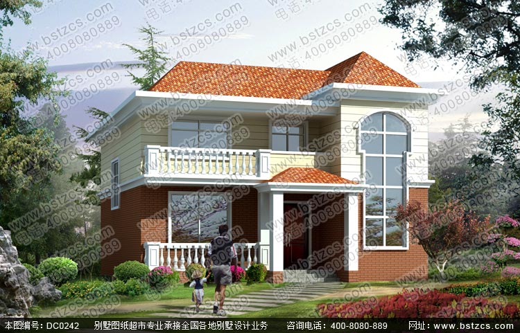 新農(nóng)村二層帶陽臺小別墅施工圖及效果圖_別墅圖紙超市,農(nóng)村房屋設計圖