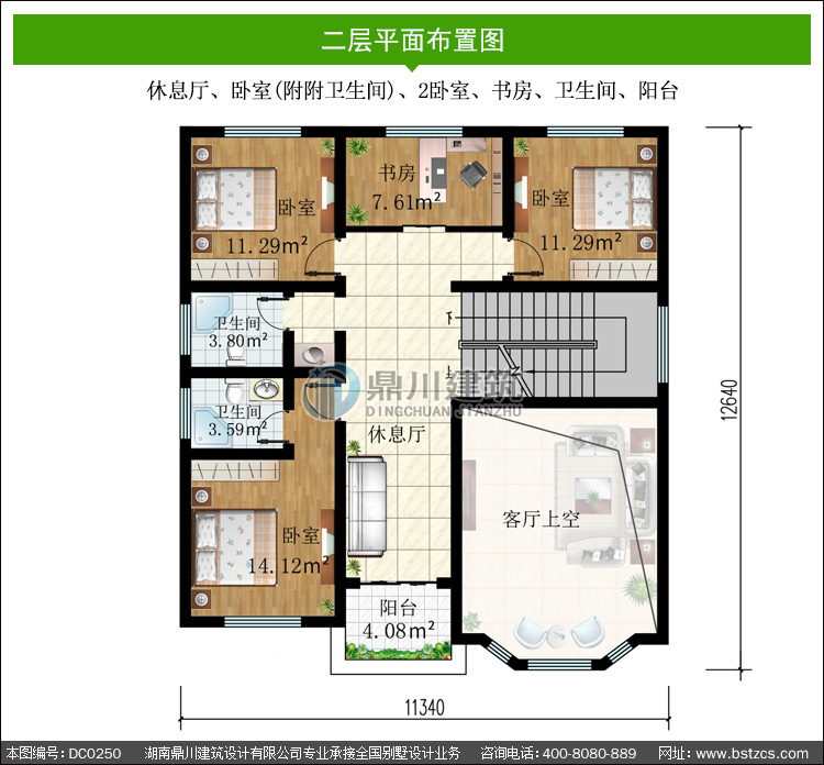 | 二 層: | 休息廳、臥室(附附衛(wèi)生間)、2臥室、書房、衛(wèi)生間、陽臺 | |||