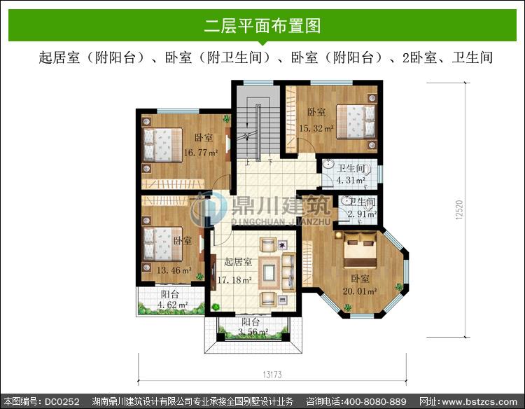 二 層: 起居室(附陽(yáng)臺(tái))、臥室(附衛(wèi)生間)、臥室(附陽(yáng)臺(tái))、2臥室、衛(wèi)生間