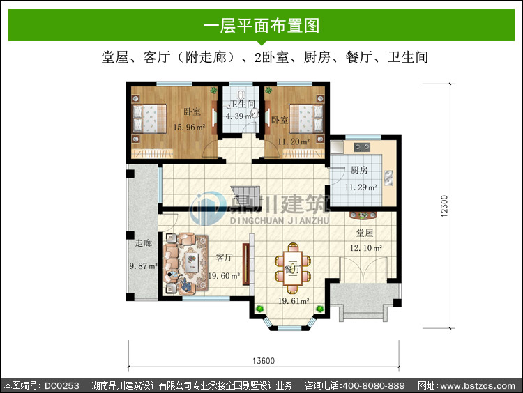 | 開間: 13.6米 | 進深: 12.3米 | 占地面積: 133.83平方米 | 建筑面積: 262.12平方米 |