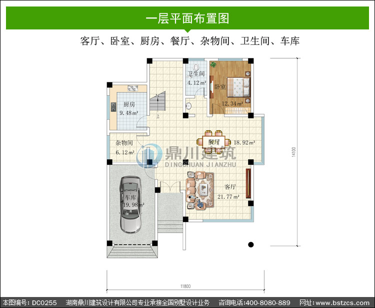 | 一 層: | 客廳、臥室、廚房、餐廳、雜物間、衛(wèi)生間、車庫 | |||