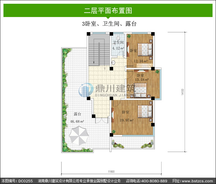 | 二 層: | 3臥室、衛(wèi)生間、露臺 | |||