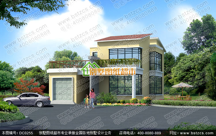 二層帶車庫現(xiàn)代風(fēng)格小別墅設(shè)計圖紙_別墅圖紙超市,二層帶露臺現(xiàn)代別墅