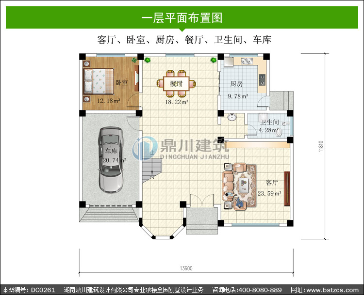 | 一 層: | 客廳、臥室、廚房、餐廳、衛(wèi)生間、車(chē)庫(kù) | |||