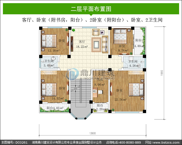 | 二 層: | 客廳、臥室(附書(shū)房,陽(yáng)臺(tái))、2臥室(附陽(yáng)臺(tái))、臥室、2衛(wèi)生間 | |||