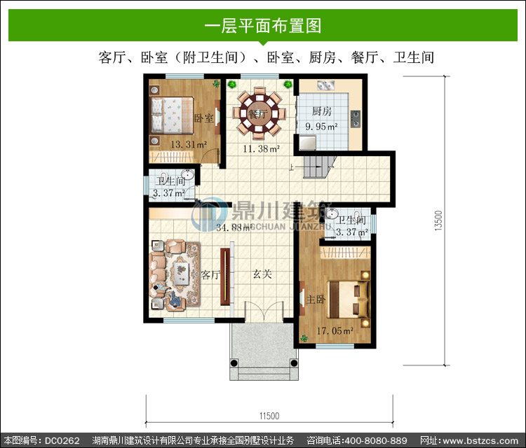 | 開間: 11.5米 | 進(jìn)深: 13.5米 | 占地面積: 131.72平方米 | 建筑面積: 357.31平方米 |