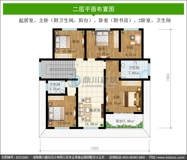 | 二 層: | 起居室、主臥(附衛(wèi)生間,陽(yáng)臺(tái))、臥室(附書(shū)房)、2臥室、衛(wèi)生間 | |||