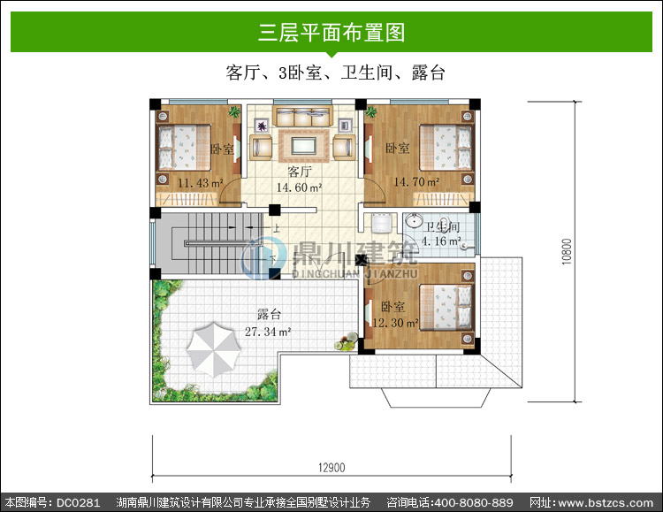 | 三 層: | 客廳、3臥室、衛(wèi)生間、露臺 | |||