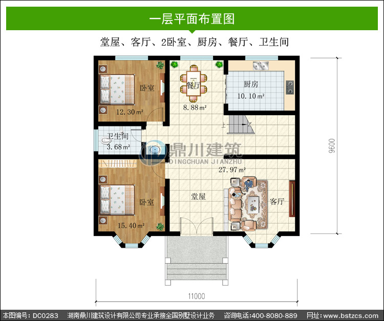 | 一 層: | 堂屋、客廳、2臥室、廚房、餐廳、衛(wèi)生間 | |||
