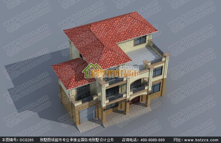 漂亮的三層復式帶車庫歐式別墅施工圖及效果圖_別墅圖紙超市,三