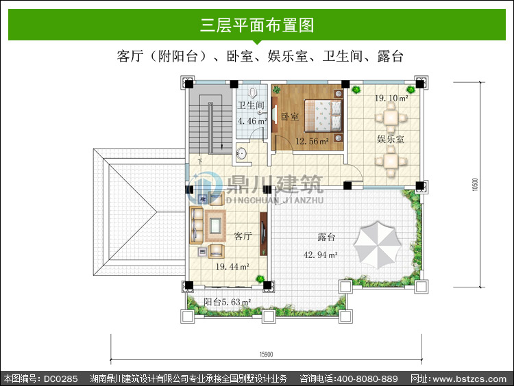 | 三 層: | 客廳(附陽臺)、臥室、娛樂室、衛(wèi)生間、露臺 | |||