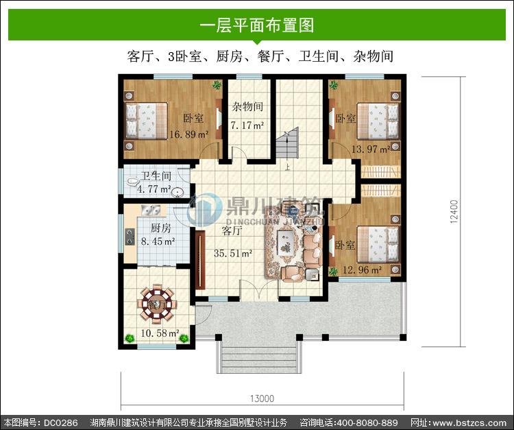 | 開間: 13米 | 進(jìn)深: 12.4米 | 占地面積: 142.77平方米 | 建筑面積: 249.95平方米 |