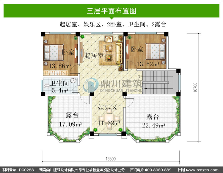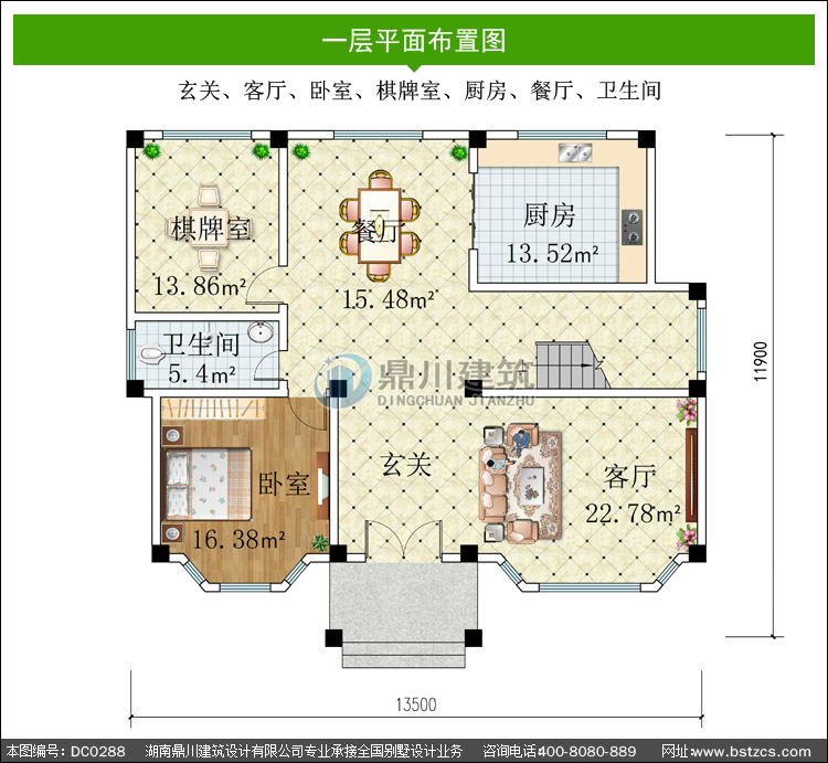 | 開(kāi)間: 13.5米 | 進(jìn)深: 11.9米 | 占地面積: 137.48平方米 | 建筑面積: 382.95平方米 |