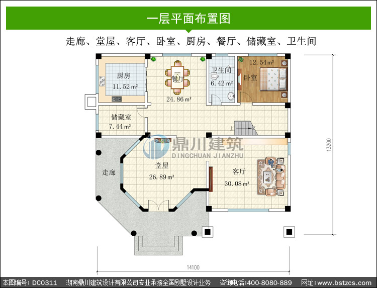| 一 層: | 走廊、堂屋、客廳、臥室、廚房、餐廳、儲(chǔ)藏室、衛(wèi)生間 | |||