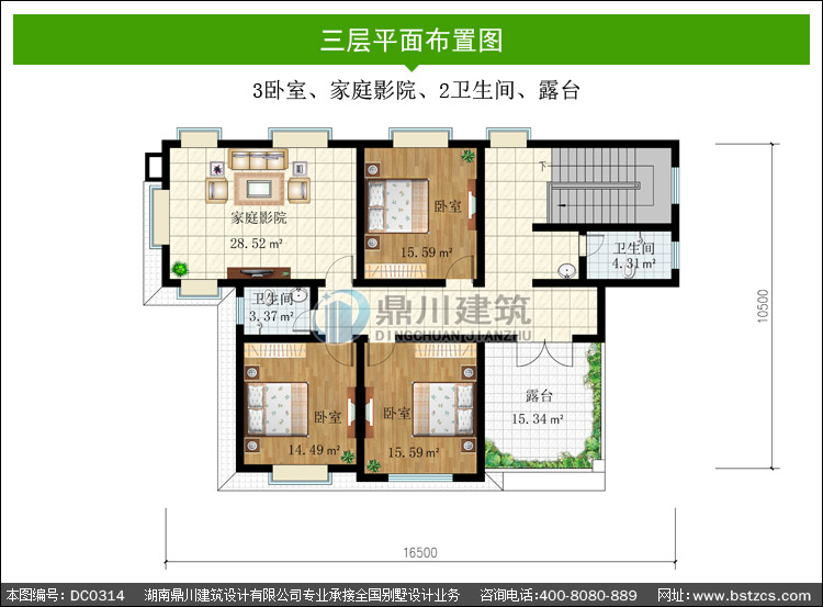 | 三 層: | 3臥室、家庭影院、2衛(wèi)生間、露臺 | |||