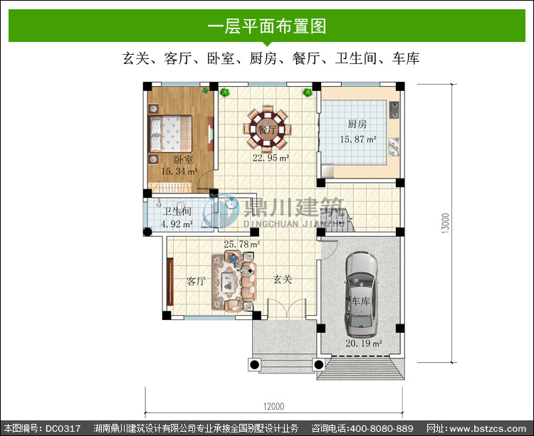 | 一 層: | 玄關(guān)、客廳、臥室、廚房、餐廳、衛(wèi)生間、車庫 | |||