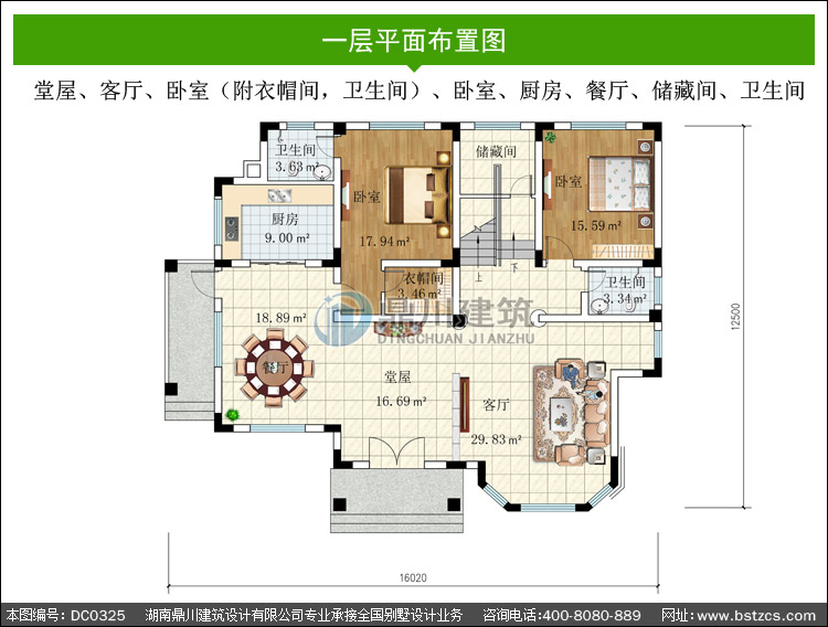 | 一 層: | 堂屋、客廳、臥室(附衣帽間,衛(wèi)生間)、臥室、廚房、餐廳、儲藏間、衛(wèi)生間 | |||