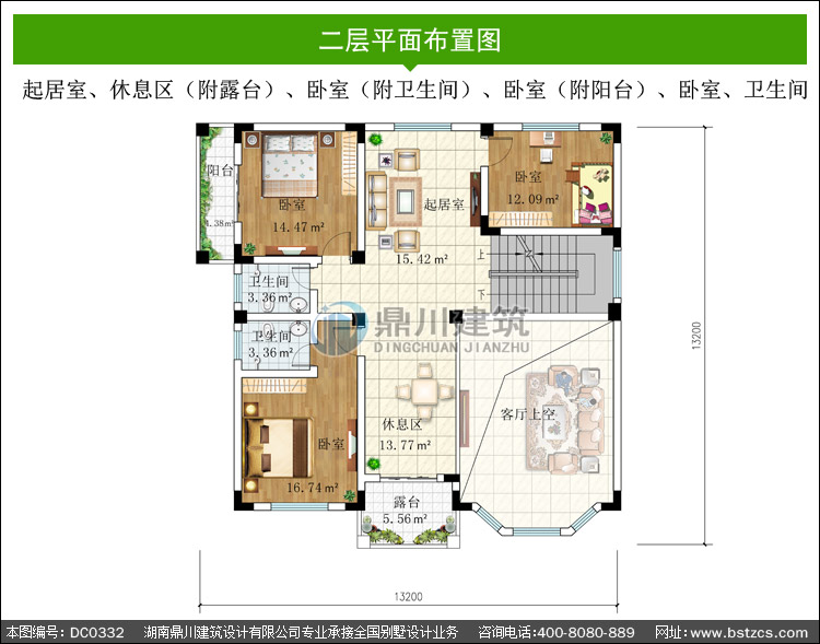 | 二 層: | 起居室、休息區(qū)(附露臺(tái))、臥室(附衛(wèi)生間)、臥室(附陽(yáng)臺(tái))、臥室、衛(wèi)生間 | |||