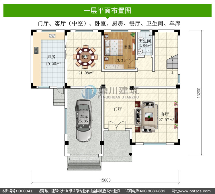 | 一 層: | 門廳、客廳(中空)、臥室、廚房、餐廳、衛(wèi)生間、車庫 | |||
