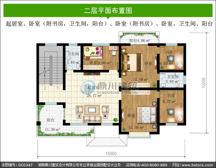 | 二 層: | 起居室、臥室(附書房,衛(wèi)生間,陽臺(tái))、臥室(附書房)、臥室、衛(wèi)生間、陽臺(tái) | |||