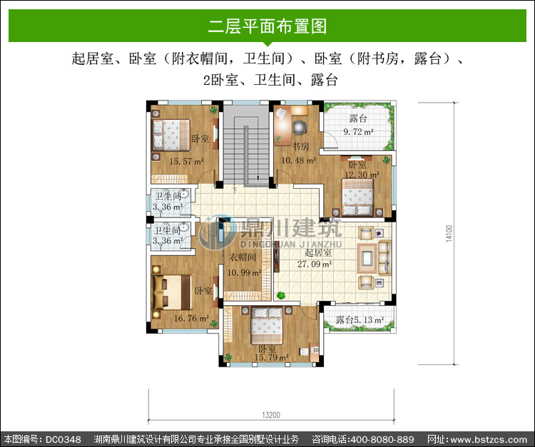 | 二 層: | 起居室、臥室(附衣帽間,衛(wèi)生間)、臥室(附書(shū)房,露臺(tái))、2臥室、衛(wèi)生間、露臺(tái) | |||