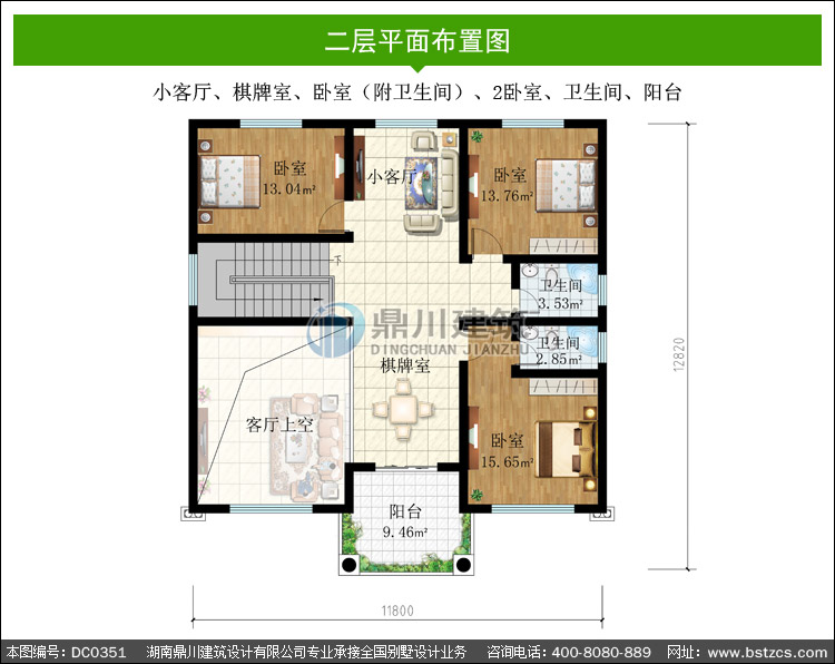 | 二 層: | 小客廳、棋牌室、臥室(附衛(wèi)生間)、2臥室、衛(wèi)生間、陽臺 | |||