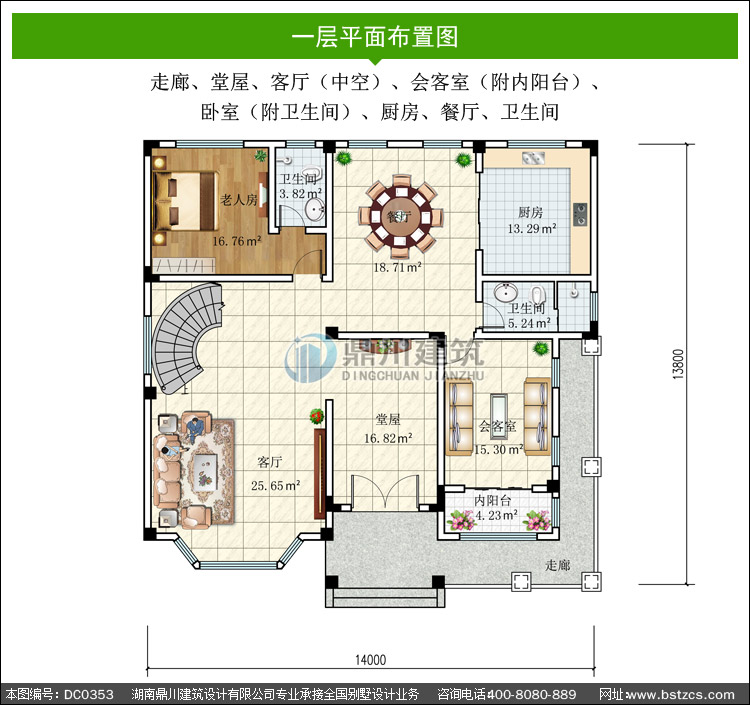 | 開間: 14米 | 進(jìn)深: 13.8米 | 占地面積: 196.66平方米 | 建筑面積: 434.81平方米 |