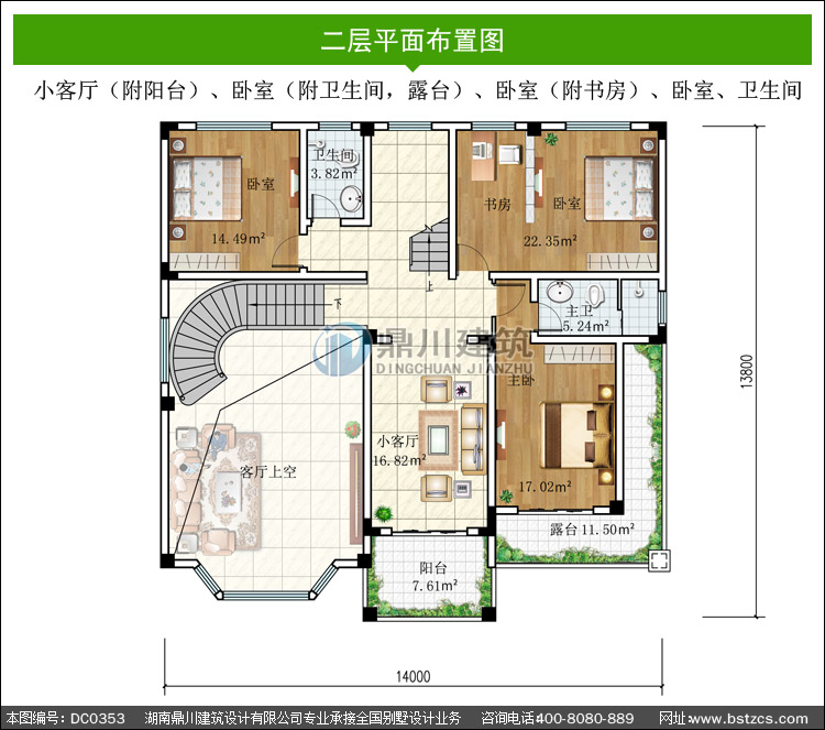 | 二 層: | 小客廳(附陽(yáng)臺(tái))、臥室(附衛(wèi)生間,露臺(tái))、臥室(附書房)、臥室、衛(wèi)生間 | |||