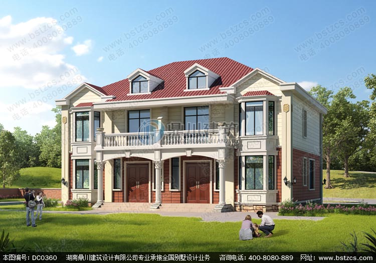 二層帶陽臺雙拼別墅設(shè)計圖紙_農(nóng)村雙拼自建房設(shè)計圖,鼎川別墅設(shè)計