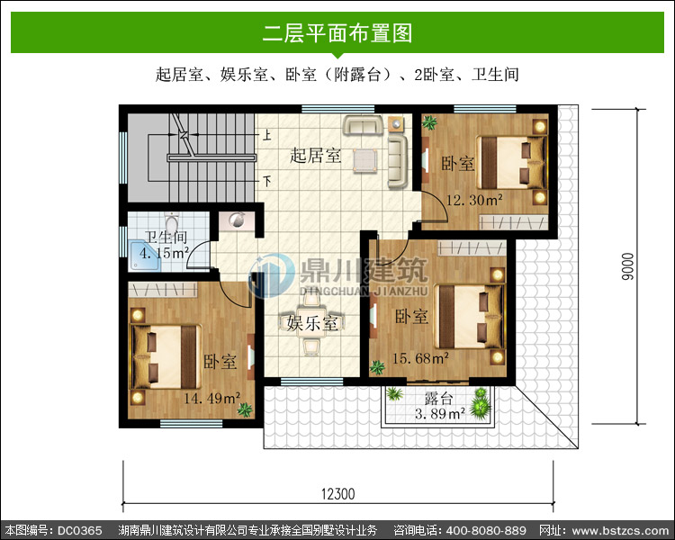 | 二 層: | 起居室、娛樂(lè)室、臥室(附露臺(tái))、2臥室、衛(wèi)生間 | |||