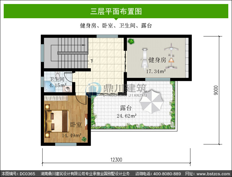 | 三 層: | 健身房、臥室、衛(wèi)生間、露臺(tái) | |||