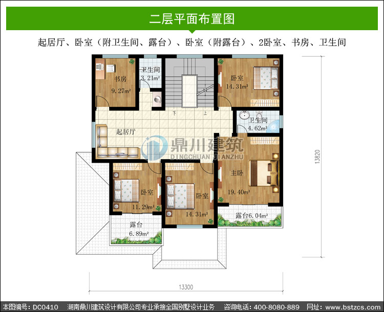 | 二 層: | 起居廳、臥室(附衛(wèi)生間、露臺(tái))、臥室(附露臺(tái))、2臥室、書房、衛(wèi)生間 | |||