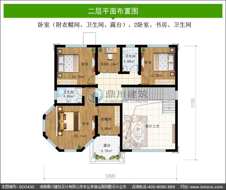 | 二 層: | 臥室(附衣帽間、衛(wèi)生間、露臺)、2臥室、書房、衛(wèi)生間 | |||