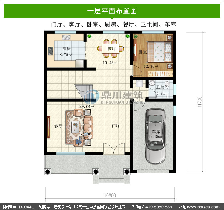 | 一 層: | 門廳、客廳、臥室、廚房、餐廳、衛(wèi)生間、車庫(kù) | |||
