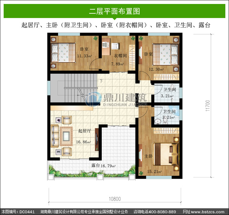 | 二 層: | 起居廳、主臥(附衛(wèi)生間)、臥室(附衣帽間)、臥室、衛(wèi)生間、露臺(tái) | |||