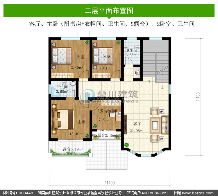 | 二 層: | 客廳、主臥(附書房+衣帽間、衛(wèi)生間、2露臺)、2臥室、衛(wèi)生間 | |||