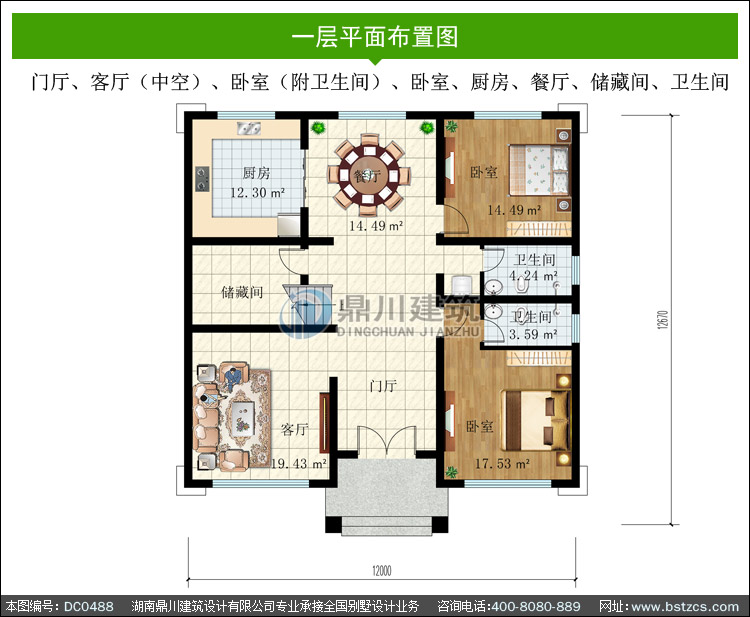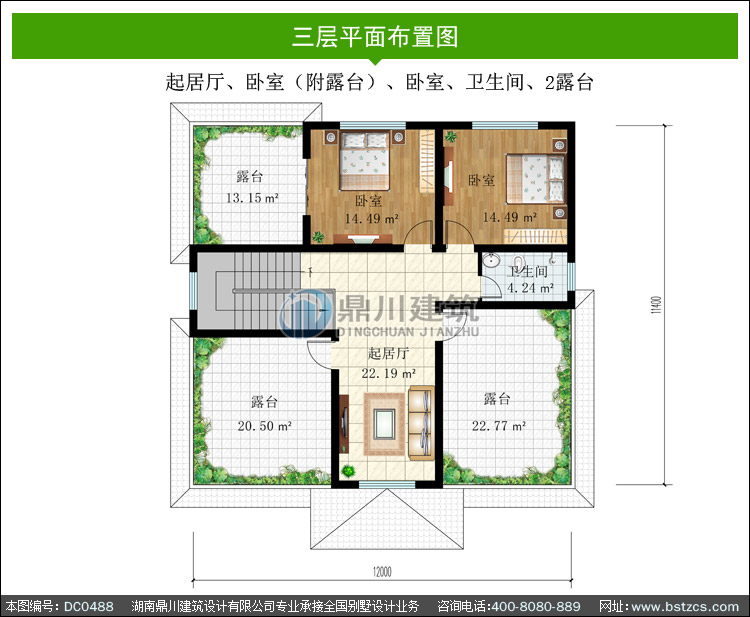 | 開間: 12米 | 進深: 12.67米 | 占地面積: 144.11平方米 | 建筑面積: 370.23平方米 |